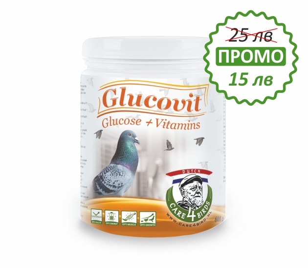 Указание: GLUCOVIT съдържа нужните витамини и глюкоза, които са необходими за състезателните гълъби по време на състезателния сезон и могат да бъдат използвани по време на линеене и размножителният период.Може да бъде комбинирано във водата с CARELYT.